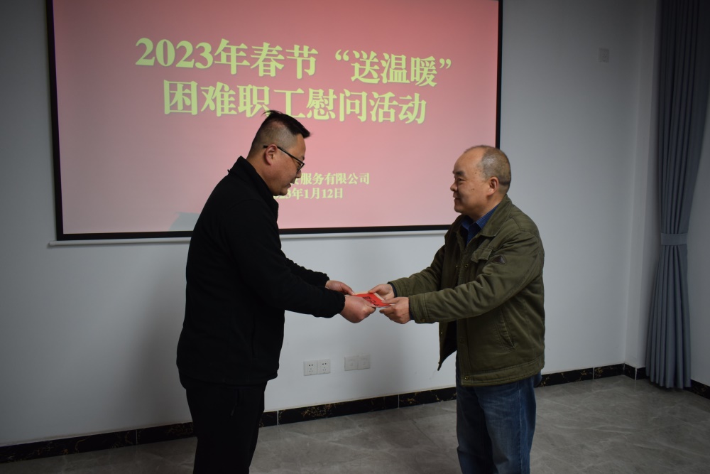 2023年春节将至,为深入贯彻党的二十大精神,切实把对困难职工的关心、关爱、关注实实在在落实到行动上,帮助困难职工家庭度过一个祥和、温馨的新春佳节,米兰在线官网(中国)一站式体育服务-官网以习近平新时代中共特色社会主义思想为指导,于1月12日下午组织开展了2023年春节“送温暖”困难职工慰问活动。本次“送温暖”活动主要聚焦本人、子女、配偶及个人供养父母患有重大病患,长年服药治疗造成家庭经济困难的以及系建档立卡贫困户的公司在职员工。